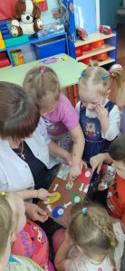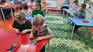 Среди испытаний были как активные, так и требующие сосредоточенности. Подвижная игра «Назови соседей» помогла закрепить знание чисел, а игра «Молчанка» продемонстрировала, насколько ловко дети могут мыслить логически, отвечая на вопросы (например, «Сколько носов у двух собак?»), лишь показывая ответы пальцами. Решение занимательных задач развивало аналитические способности, а творческие задания, такие как строительство цифр из конструктора LEGO и создание корабликов из геометрических фигур, демонстрировали креативность и пространственное мышление.